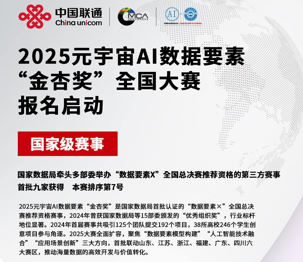 在数字经济蓬勃发展的当下,数据已成为关键生产要素。元宇宙与人工智能作为前沿科技领域,正深刻改变着各行业的发展模式。为推动元宇宙、AI 与数据要素的深度融合,释放数据要素价值,2025 元宇宙 AI 数据要素 “金杏奖” 全国大赛火热进行中!初赛报名即将于 2025 年 7 月 31 日截止,机会稍纵即逝,快来抢占这一数字创新的高地!
