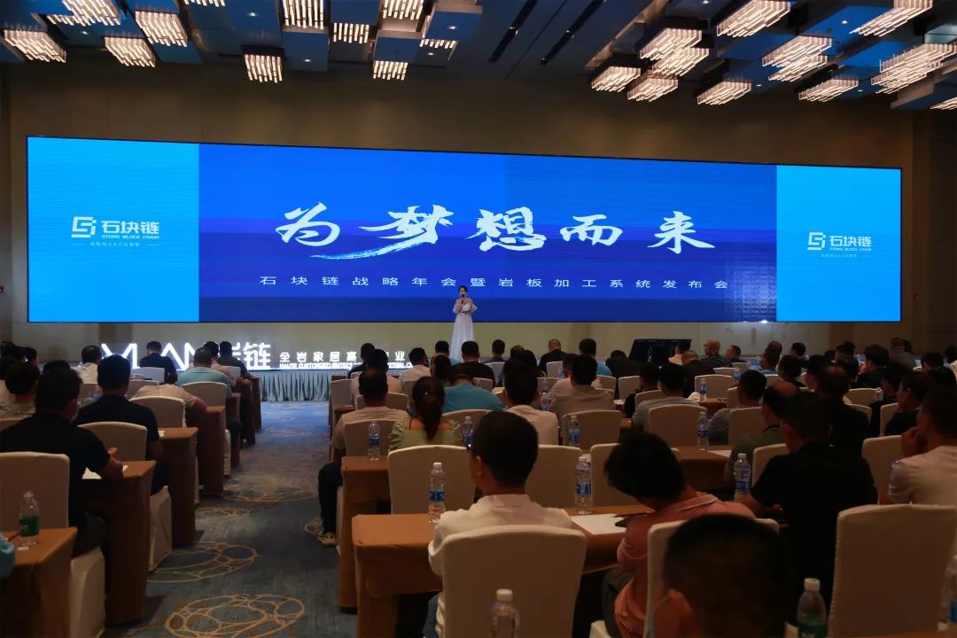我委常务委员单位广东石块链科技发展有限公司(以下简称:石块链)发起主办的“石块链发展战略年会暨岩板加工系统发布会”在顺德联塑万怡酒店隆重开幕。